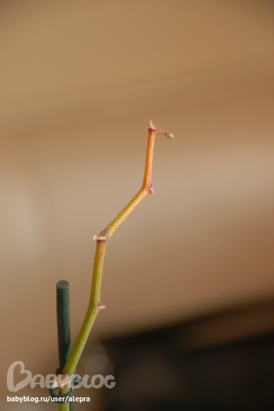 пересадите в горшок побольше(на 1.5,-2см и чуть поглубже),земля специальная для орхидей продаётся, и отрежьте эту "палку".у меня после пересадки вылезло 2 "палки"все цвели.поливала погружным способом раз- 2( летом) в неделю.они долго цветут и завязываются тоже долго.