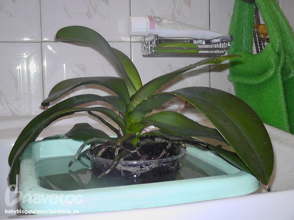 Домашние цветыДевочки, подарили мне такую орхидею в январе. Отцвела. За всё это время вылез только 1 новый лист. Цветов больше не было. Сам цветок стоит в полутени. В родном пластиковом цветочном горшочке. Поливаю только в блюдечко, сверху ничего не лью. На днях стала засыхать верхушка стрелы, на которой были цветы. И еще мне кажется, что ему уже тесно в этом горшке.