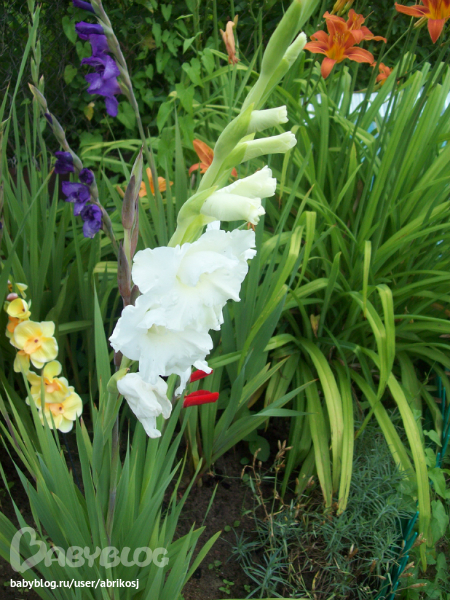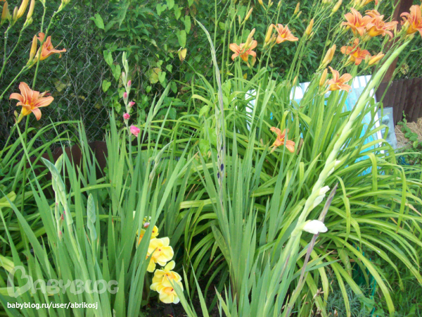 Ммммм ЛАНДЫШИИИ!!!! Ой как хочется вдохнуть этот прекрасный аромат! Так здорово! А как вы здорово посадили гладиолусы! Очень красиво! Как дружно цветут! Скажите пожалуйста, на сколько сантиметров в землю вы их сажали?
