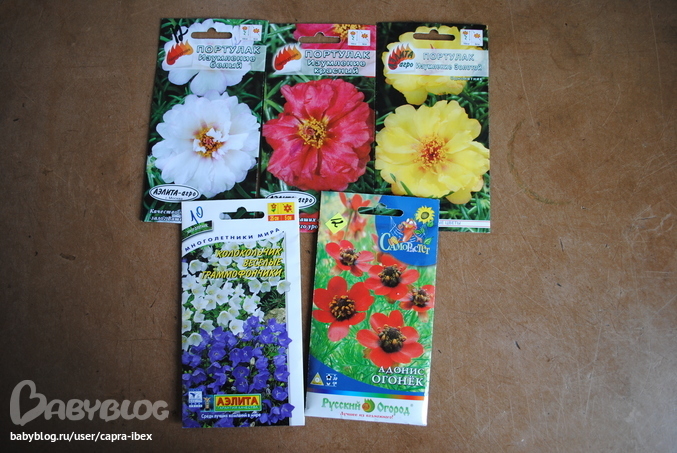 Портулаки в апреле посею, колокольчики не знаю, сеять или нет, так как на саду они уже растут, адонис огонек посею на постонное место.