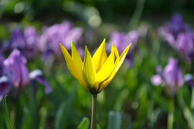 это маленький тюльпанчик, выкопанный как-то давно в степи, цветет на клумбе