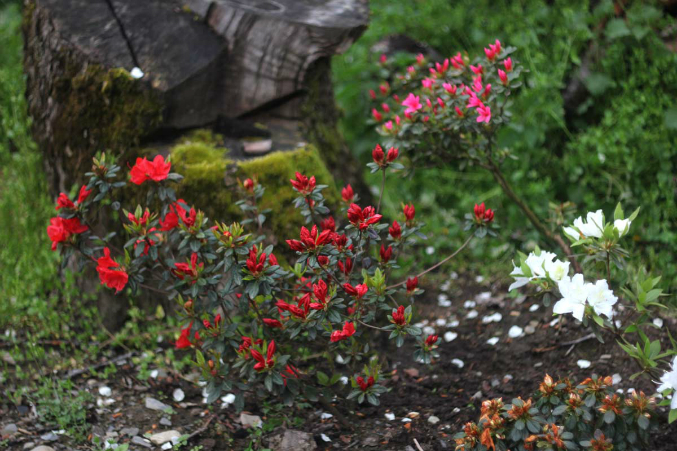 По сортам точно не скажу, но судя по низкорослости и мелким цветкам это что-то из японской селекции. Кстати в бытность моей работы в НИИ была у меня практикантка из МГУ, родом из Бурятии, рассказала историю, что есть у них там местный вид рододендронов, листья которых шаманы используют для приготовления зелья, вводящего в транс. Одним словом, галлюциногенные листочки)