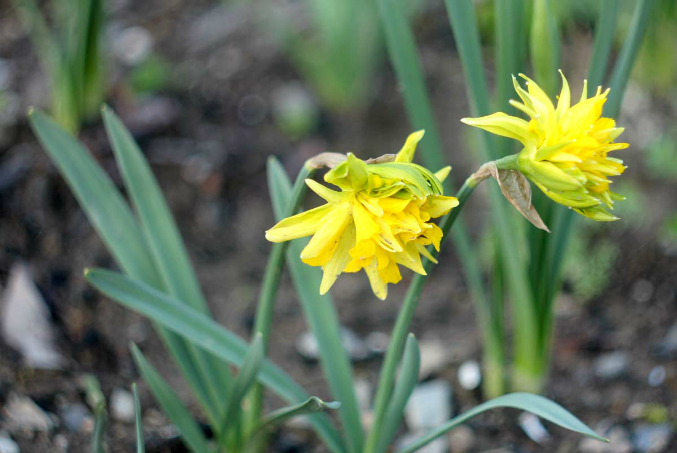 Нарциссы, махровые, дожди переносят с трудом, цветы поникают, сорт Рип Ван Винкл