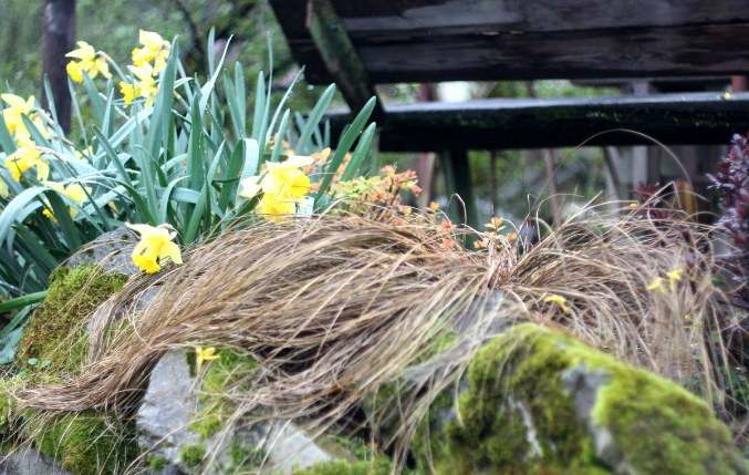Осока Буханана, новозеландская медная трава, моя любимица. Выглядит как засохшая всегда, большинство думает, что она просто засохла, ан нет, вот такая она "шутница";) в прошлом году даже дала самосев и теперь у меня есть еще два кустика)))
