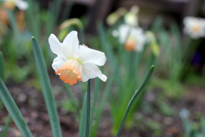 Так называемые розовые нарциссы, весьма отдаленно розовые, но выскоие, хорошо переносят дожди, в плотной группе будут хороши