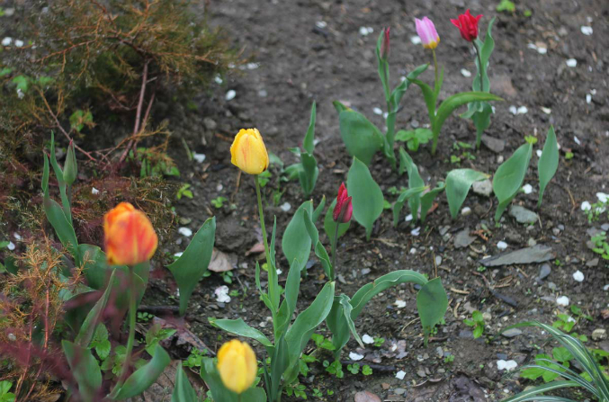 А еще у меня есть вот такие "живчики", в позапрошлом году купила в Магните несколько пакетов по бросовой цене и благополучно о них забыла. И тут в декабре мой папа вспоминает, что они таки есть, и пошли мы их под снег высаживать, благо земля у нас не промерзает. Тюльпаны зацвели даже. Потом выкопала их, было много деток, в этом году посадила их уже по правилам. Все детки дали листья и даже некоторые зацвели. Розовый тюльпан это вид прямоножковый ( Tulipa orthopoda )