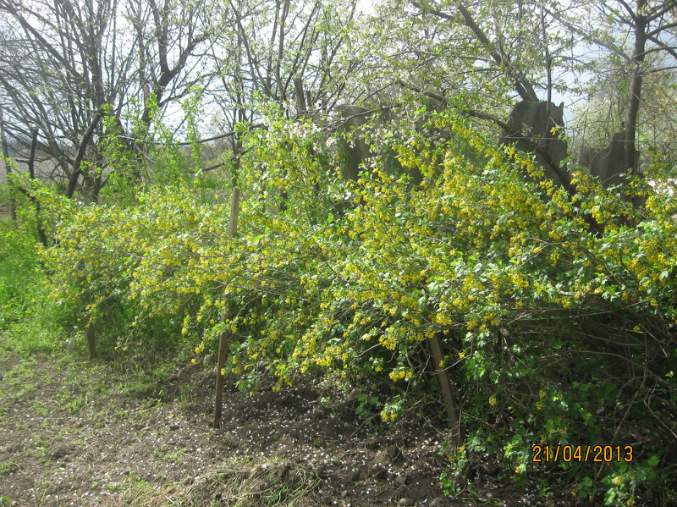 Наташ, я спрошу))) не помню.....она высокими кустами растет....цветет всегда желтым.....ягоды черные......но листья обычные-не пахучие...