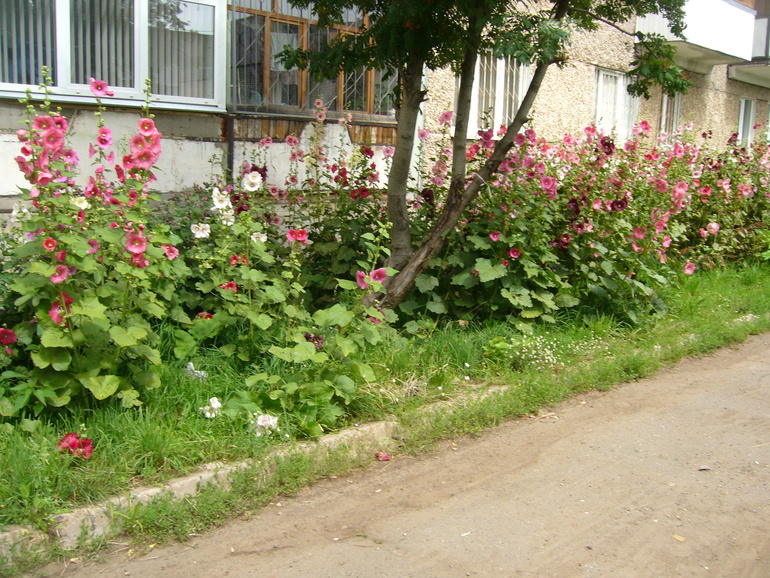 ДвухлетникиВот такая красота распускается у нас под окнами городской квартиры!!! Это мальва. Размножается самосевом,растет как сорняк,никто за ней не ухаживает. А смотрится очень красиво.