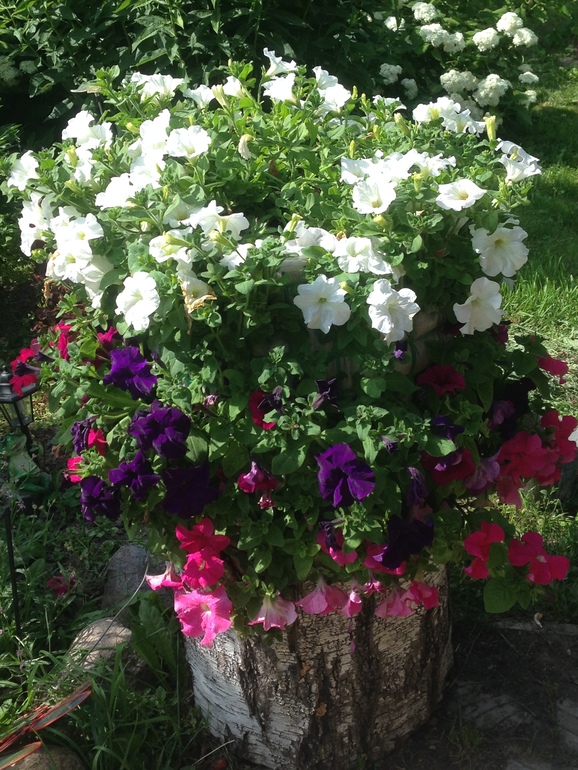 Красотища какая! Подскажите, а как у вас так красиво петуния получилась на пенечке, как торт двухъярусный?)))
