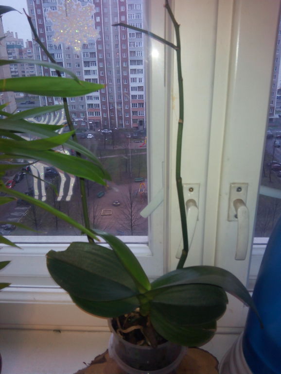 А вот моё уродство,растущее так,как вроде бы положено.Еле зацвела и то одним цветком ,второй засох в бутоне.. Вот теперь думаю,может тоже в землю его и керамический горшок??