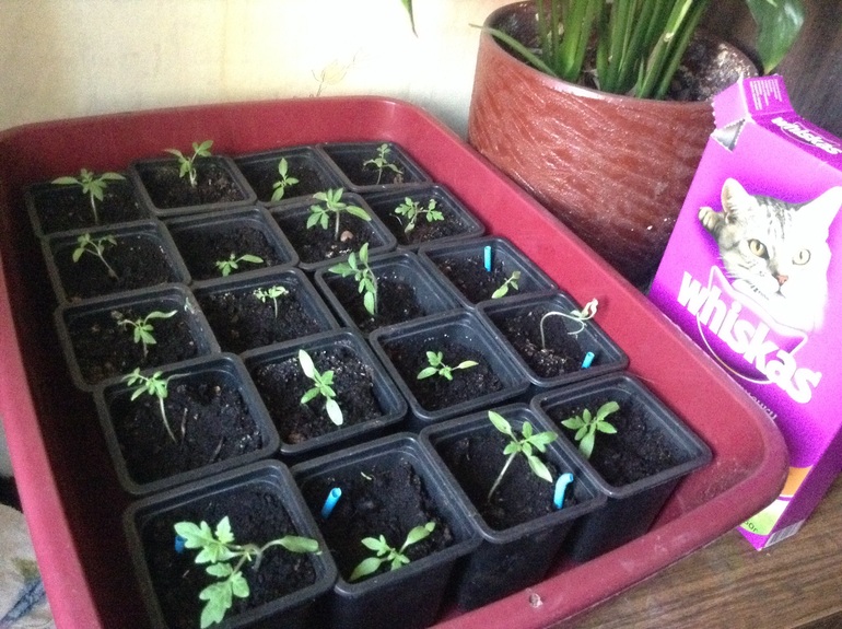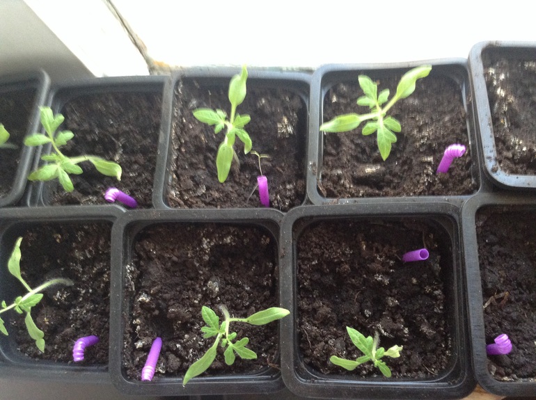 у меня тоже трубочки и тетрадочка) да и рассада тоже маленькая ещё, я в конце марта сажала, но я так уже три года делаю -когда потом погода позволяет, отношу в теплицу, а на ночь домой, если заморозки, и к началу высадки в грунт, она у меня стандартная, не переросшая)