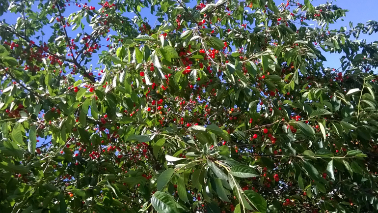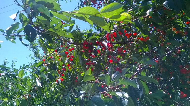 Красота) Этот год вообще урожайный. Вишня, черешня, персики, сливы и алыча, всего много на деревьях висит)))