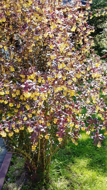 у нас на даче 3 вида барбарисов, но все — невысокие кусты, а этот прям высокий.. я и не могла подумать, что это тоже барбарис..и не помню, были ли на нем шипы ( или тоже не у всех барбарисов есть?)
