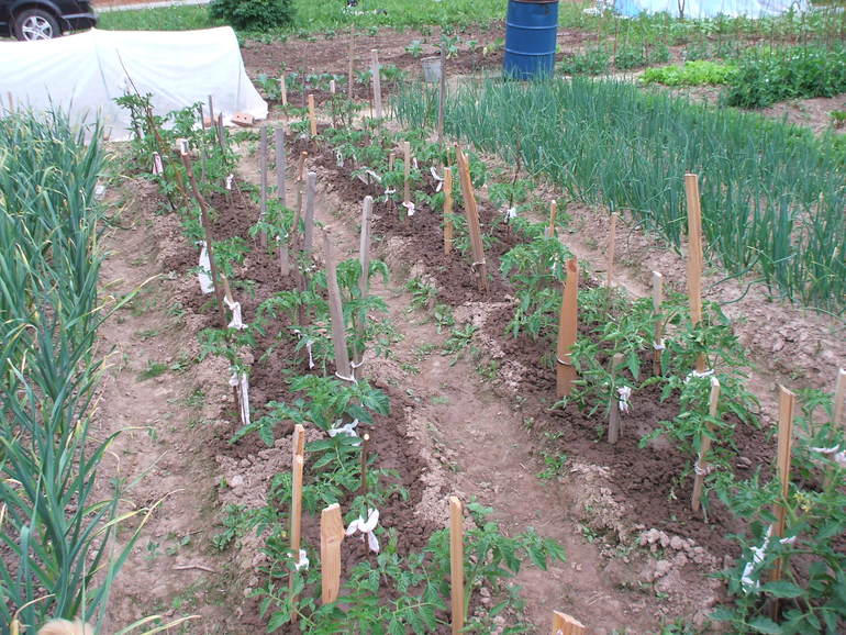 помидорки когда посадила они чуток подмерзли, стояли почти одни стволы, но отошли и вон какие уже шапки сверху зеленые и цветут.