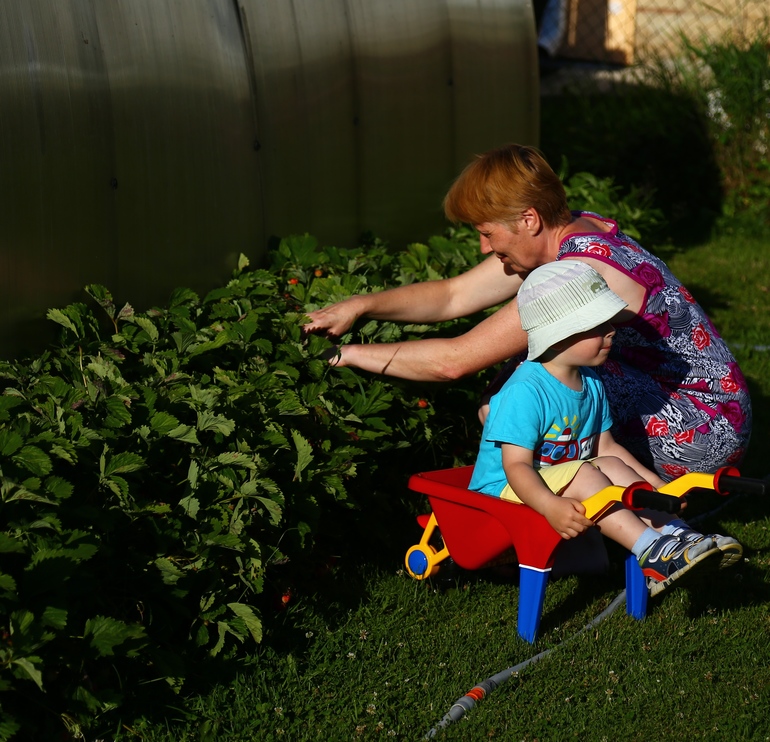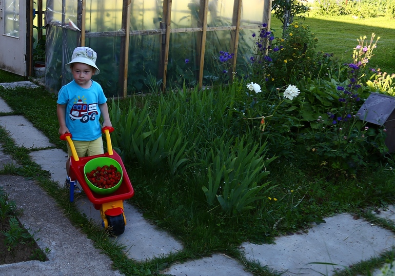 Не могли бы Вы рассказать как ухаживаете за клубничкой, у нас клубники много, кустиков, в смысле, а ягод в этом году чуть- чуть, жара может быть сказывается, как поливаете, чем удобряете, заранее спасибо, фото класс Ваши, и ягодки тоже