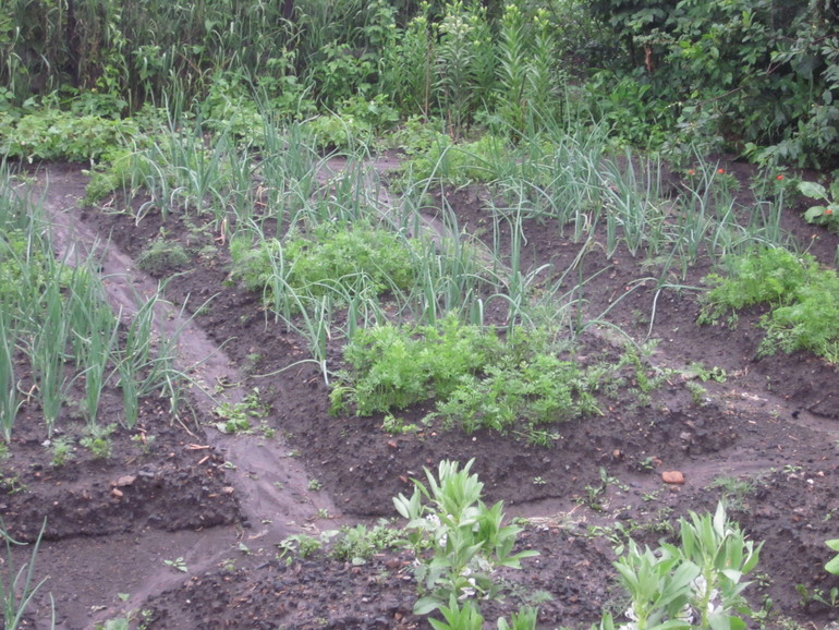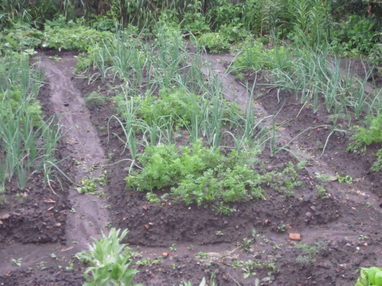 Вот так мои грядки сравнялись с бороздами. Все с картошки смыло в борозды.