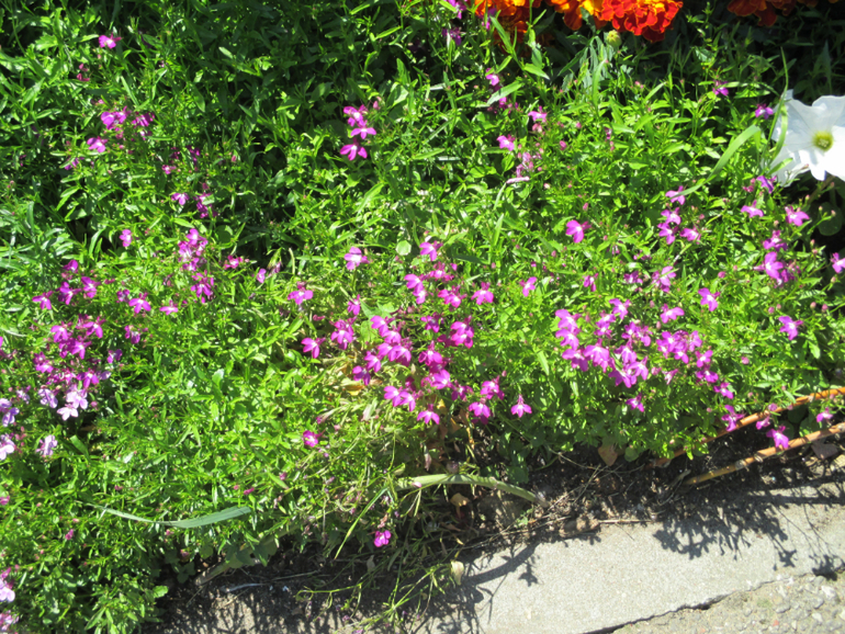 Лобелия у меня на клумбе посажена,там полу тень,солнце только до обеда,а еще в ящике с петуньями есть,но петуньи их заглушили,но ничего цветет,в тени от петуний.