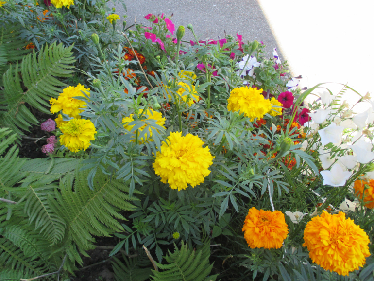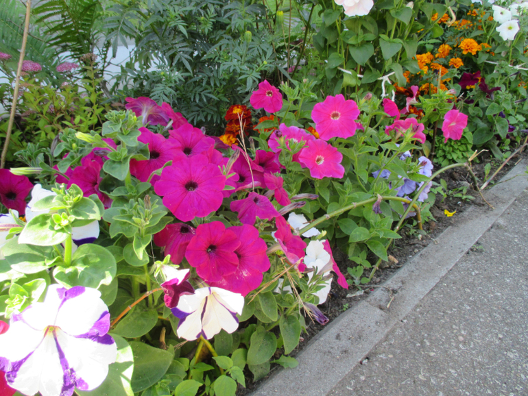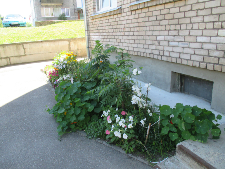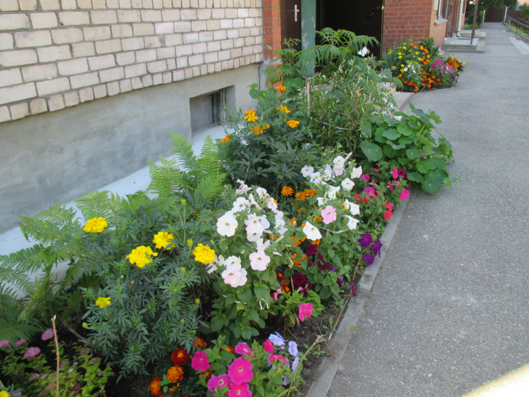 А теперь мои клумбы,самый пик цветения.Клумбы около пяти этажного дома,стараюсь,соседи благодарят,но сами ни кто не помогает,поливать надо,засуха.Но я не в претензии к соседям,сама посадила,сама и ухаживаю.Но,вот,уже какой то гад ночью срезал колокольчики,соседка увидела,хотела догнать.Написала в полицию,но конечно никто не будет никого искать.Ещё пион сорвали и петунью тоже кто то срезал.Очень обидно,но я себя успокаиваю,пусть им руки отсохнут. Теперь мои клумбочки,прошу ещё немного посмотреть