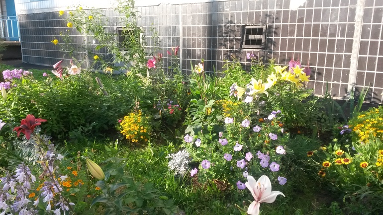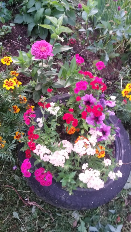 Все просто бархатцы агератум питунии самые простые первыц раз у меня рассада вышла... и то ни одна крупноцветковая не взошла. Еще есть ирисы флоксы гайлардия лилейники хосты колокольчик шток роза гелиопсис гортензия помидорки)))) аквилегии и астильбы немного нарцисов и тюльпанов ну и безвременник конечно. Кстати его мне девочка с ББ подарила.