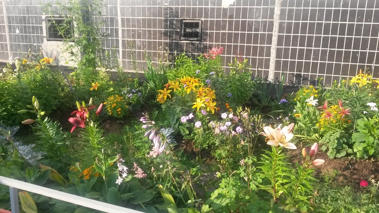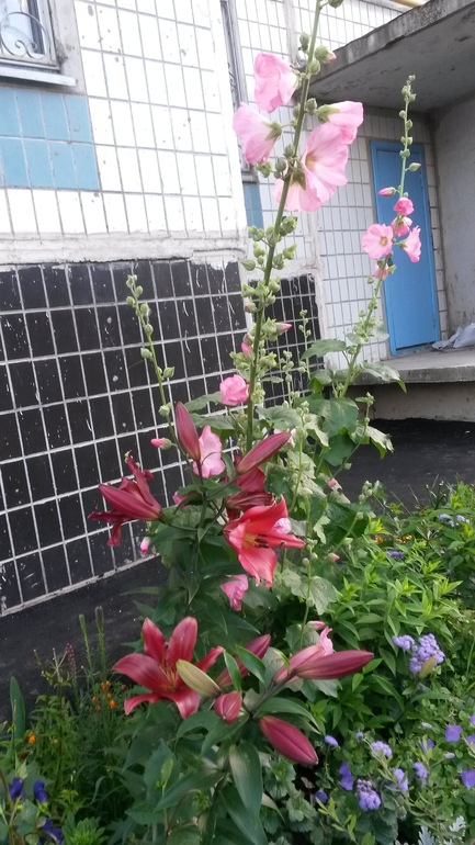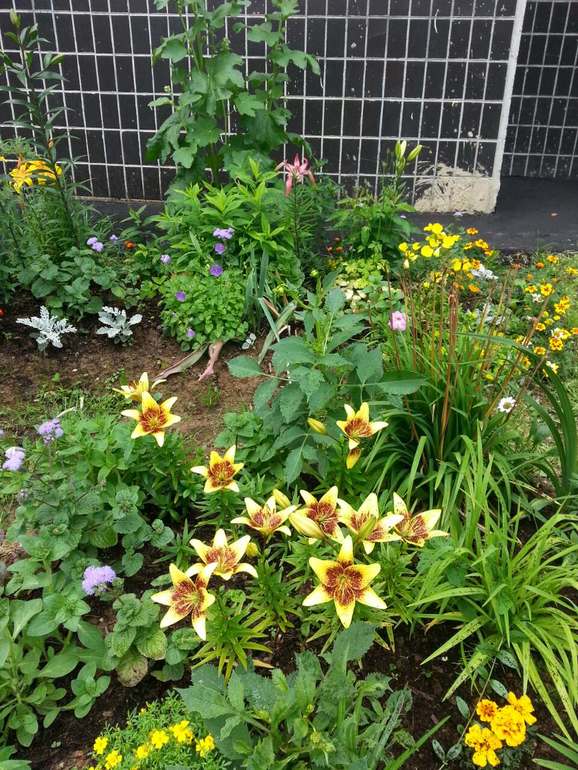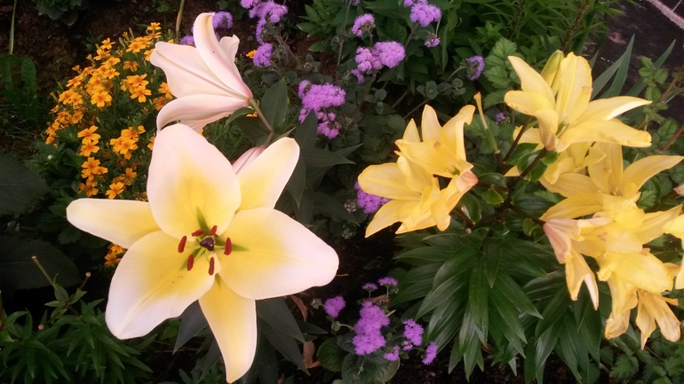 А вы не скажете название ваших цветочков. Я только лилии опознала (их у меня выкопают тут же) и ромашки с бархатцами ))).