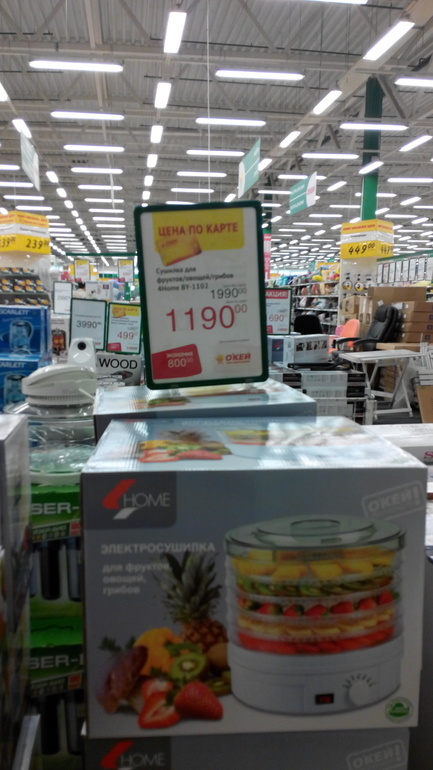 Я сушила только яблоки свои. Поэтому могу рассказать про них. Там пять поддонов. Нарезала кружками, выкладывала по кругу и включала в сеть. Ставила на ночь в комнате. Поддоны надо переставлять,чтоб равномерно просушились. Это я делала один раз если просыпалась. Часов за 6 яблоки сушаться. Запах стоял не передаваемый. Бывало, что передержу и они становились как чипсы хрустящие. К сожалению ни разу не взвесила перед сушкой, но вот после один раз это сделала. Получилось с пяти поддонов 180 грам. Сушила и днём тоже. Месяца два сушила. Электроэнергию подсчитали. За сушку вышло рублей 25. Все яблоки складывала в наволочку( свекровь подсказала). А дома уже по банкам 3-литровым разложила и резиновыми крышками закрыла. Яблоки все одинаковые, похожих на чипсы нет. На компот рука не поднялась их использовать. Ем с кашей по утрам. Во двор с ребёнком когда выходим беру с собой. Детям очень нравятся. Год назад я купила такую же за 790 тоже по акции.