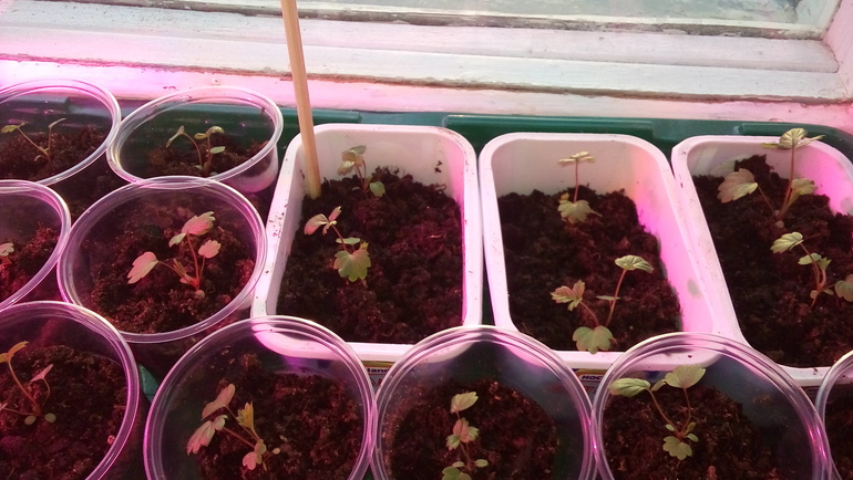 Подсвечиваю. В прошлом году к середине мая высаживала. В августе ели землянику и до морозов.