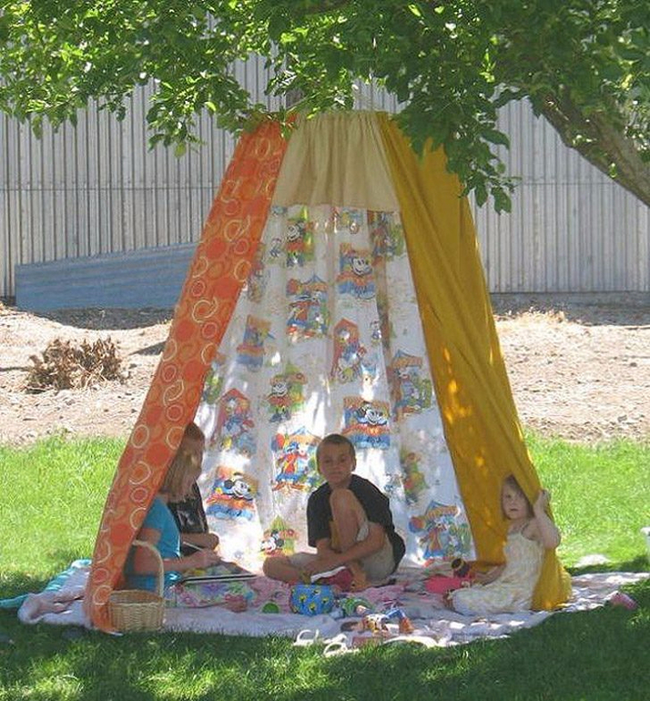 Я делала на день рождение в саду. А еще просто атласные ленты вешала на деревья. Все лето висели. И птиц отгоняли и глаз радовали)))