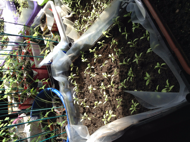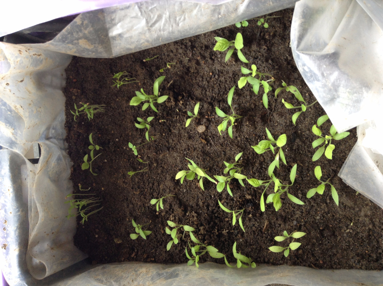 У нас в грунт ещё ничего не высадишь. Снег с дождём, слякоть и мерзость. Но рассада на подоконнике растёт.