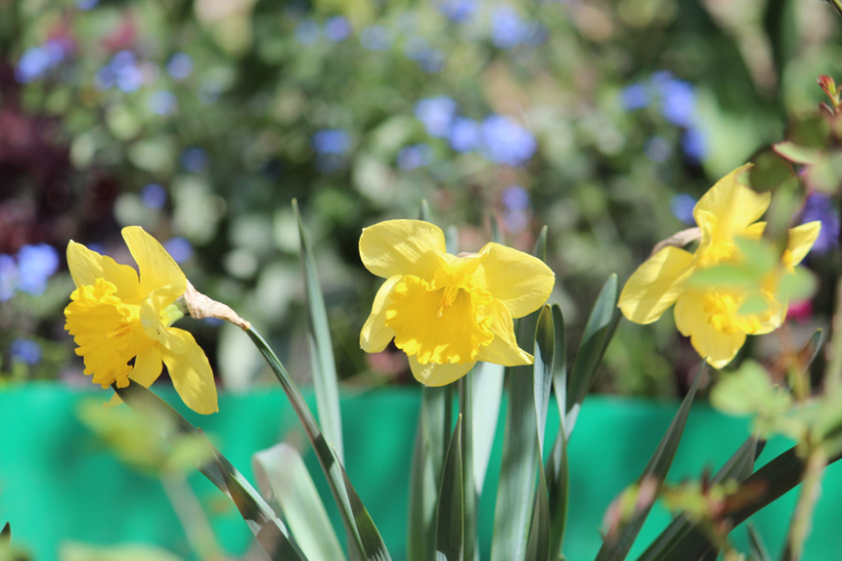 Желтый - это лютик едкий. Тот еще своенравец)). Ползет куда хочет, а не куда мне нужно. Отцветет, буду пересаживать. Голубеньким цветет брунера. Незабудку я который год забываю посеять)).