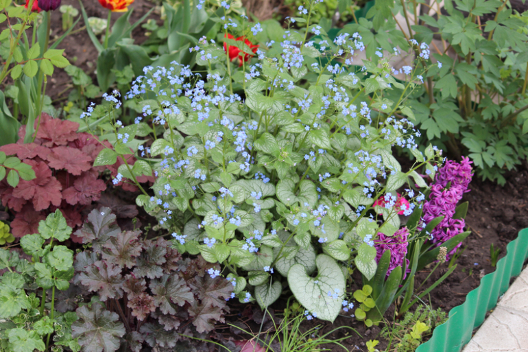 Мы все когда-то начинали)). Неудивительно, у незабудки и брунеры цветы похожи. Незабудка мне очень нравится, но брунера более декоративна с ранней весны до заморозков, поэтому отдаю предпочтение ей. Сначала цветет милыми голубыми цветочками, а потом все лето стоит шикарным кустом с серебряными листьями.
