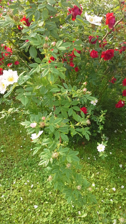 Есть 2 больших куста роз. Цветут очень обильно с апреля по июнь. И все. Потом могут вылезти несколько цветочков. Но дело не в этом. Осенью обрезаю старые, толстые, которым больше трех лет, стебли. Как всегда борюсь с вредителями, удобряю. В этом году, откуда ни возьмись, появились маленькие дикие розочки (как у шиповника) белого цвета! Не могу понять как! И что с ними делать. Обрезать эти ветки, обрезать все розы? Фото прилагаю: