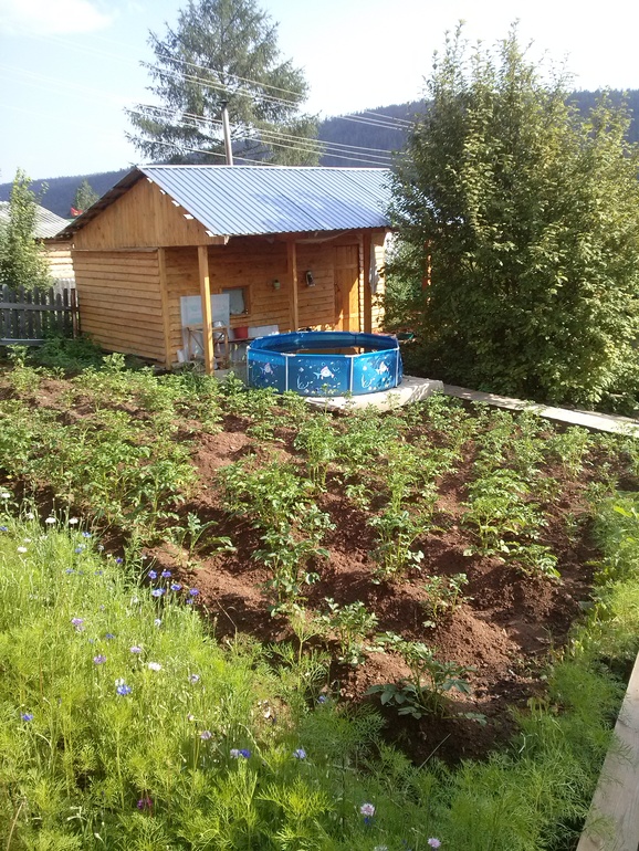 Хвалюсь, мой участок.Покажу вам, девочки. В детстве ненавидела ее, жара, дождь - жили по бабушкиному лунному календарю. С 12 лет грядки копали и огород под картошку, окучивали, пололи в 30 градусную жару, малину собирали в жару же. Все изменилось, когда папа дал мнк. СВОБОДУ. Вот тебе прополоть. задание, а когда ты это будешь. делать - не важно, лишь бы было. сделано... а потом. . Потом я выросла и поняла, что я люблю ( не смейтесь) ПОЛОТЬ!! Я прям медитирую. Потом - цветочная грядка МОЯ стала, потом зелень, потом сама помидоры высаживала в теплицу, по сто кустов одна за раз, лишь бы не мешал никто. Потом ( как много "потом"))))) вышла замуж второй раз, муж рукастый-головастый))) сперва забор поменял ( до этого только мой дед стройкой занимался, мама все не верила, что будет новый забор), затем беседку справил, затем дорожки с клумбами и новую баню! В прошлом году - новый туалет и парковку. В планах у него - дом, плавно переходящий в беседку и теплицу и курятник))) а теперь фото ))