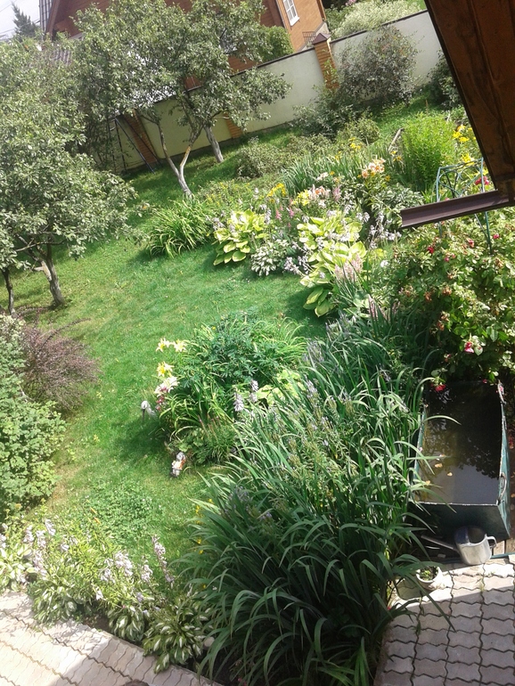 Вот вид сверху на цветник, который по сути своей загораживает огород.