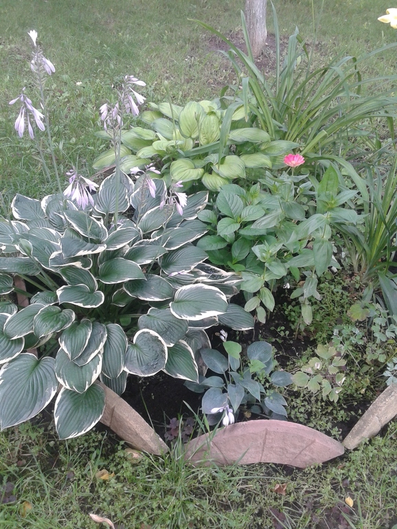 Это лето прошлого года, тут еле прижились Лиатрисы (про них я напишу в другом посте) и бело-зеленые хосты ,