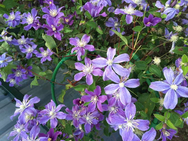 Сейчас стоят просто листья.А кормлю я их всем что есть,в июне сброшенной травой поливала раза два,ранней весной амеачной селитрой,в землю заделывала какие-то удобрения органо минеральные,а осенью перегноем можно замульчировать.и еще три клематиса у меня пока без цветов,может позже зацветут,незнаю ,они все молодые ещё .