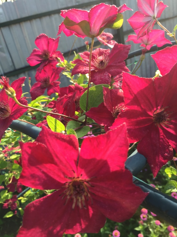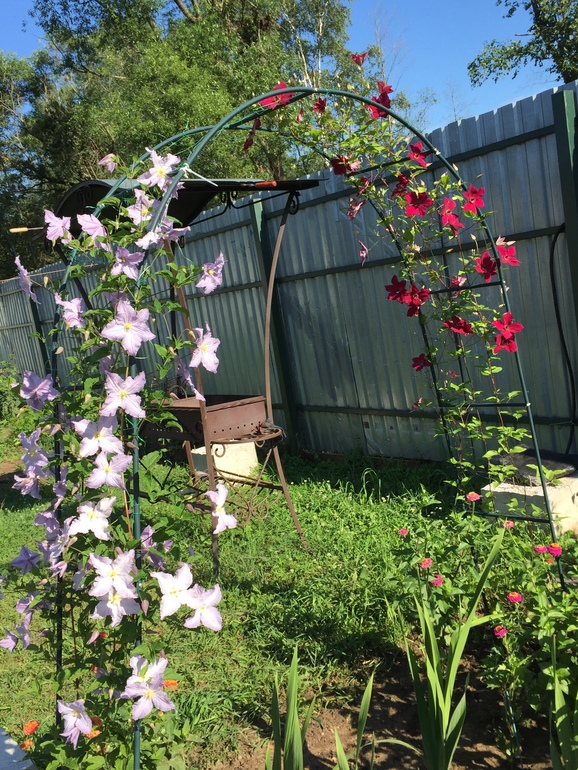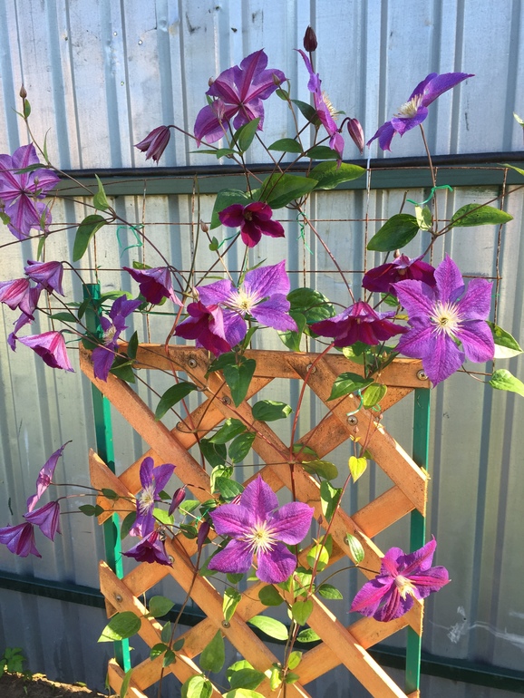 Чем Вы клематисы кормите? У меня 2 куста, еле растут и быстро отцветают. Может не в том месте сидят?