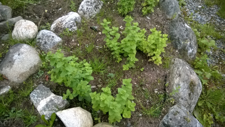 Первая обычная "дикая" мята, не перечная, очень приятный лёгкий запах, я срываю и завариваю обалденный чай! На зиму сушу. Хорошо и быстро разрастается.