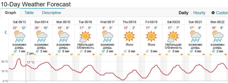 Я прогноз здесь смотрю https://www.wunderground.com здесь авиадиспетчеры погоду смотрят, либо другие авиационные сайты, все совпадает