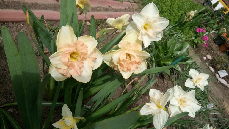Очень красивые. Ты их выкапываешь? У нас только начинают заветать коротенькие, хиленькие. Нарциссы наверно и не будут, замерзли.