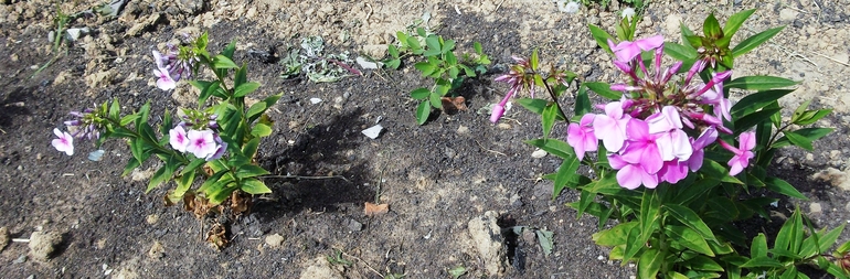 флоксы первый год такие. Есть георгины в стадии развития , два простых лилейника желтый и оранж. Молочай горный и хризантемы, их покажу на следующий год.)