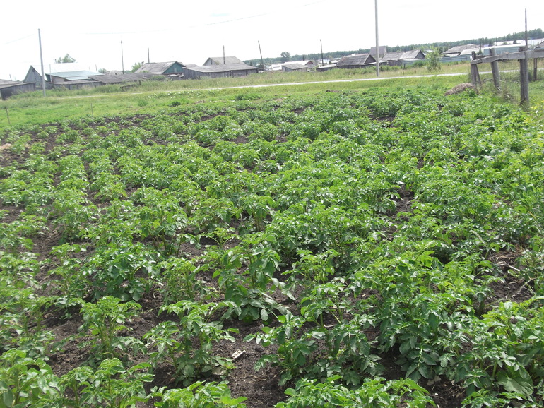 второй день окучиваем. Вот видно с этой стороны забора у нас нет.)))