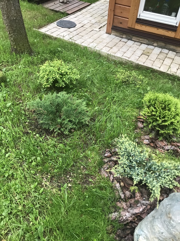 Тут у меня разные сорта можжевельников, почти все горизонтальные