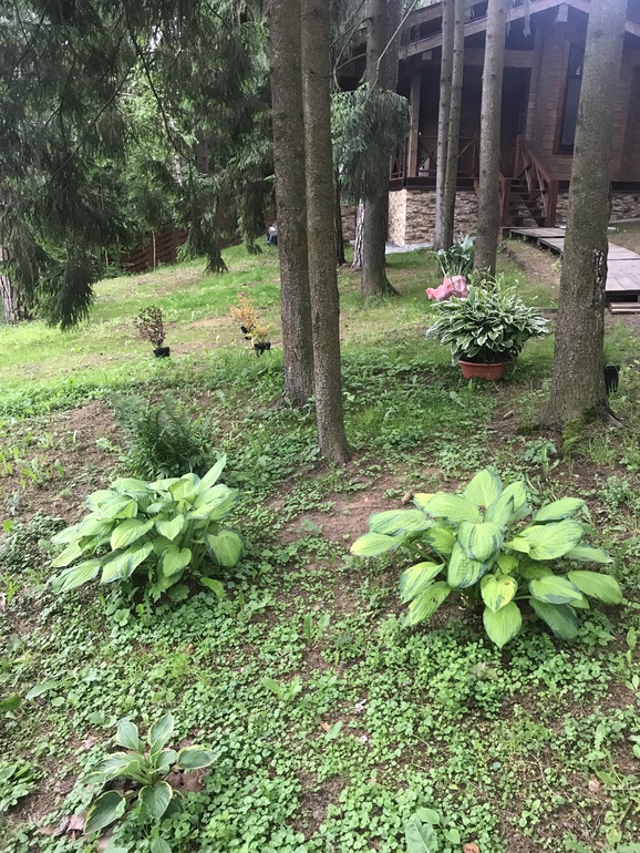 И вокруг хосты, папоротники и т.д. Частично попадающие на дорожку.. эдакая лесная, тропическая тропа))