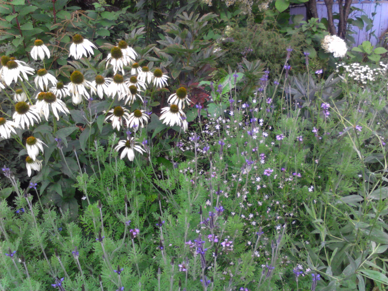 однолетняя лаванда Нормандия, ампельная вербена и гипсофила многолетняя позднего срока цветения до 1,4м высота