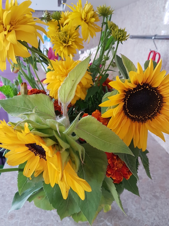 Мини подсолнухи в этом году так мне понравились, что в следующем году посажу их везде где только можно) Уж очень они нарядные.