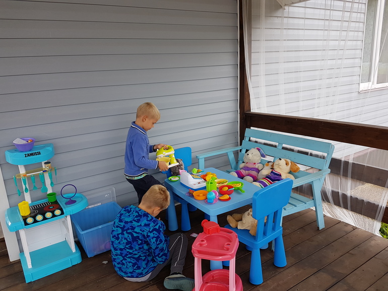 Кто сказал что мальчики не играют в посуду?) Мои вон...целый ресторан открыли)