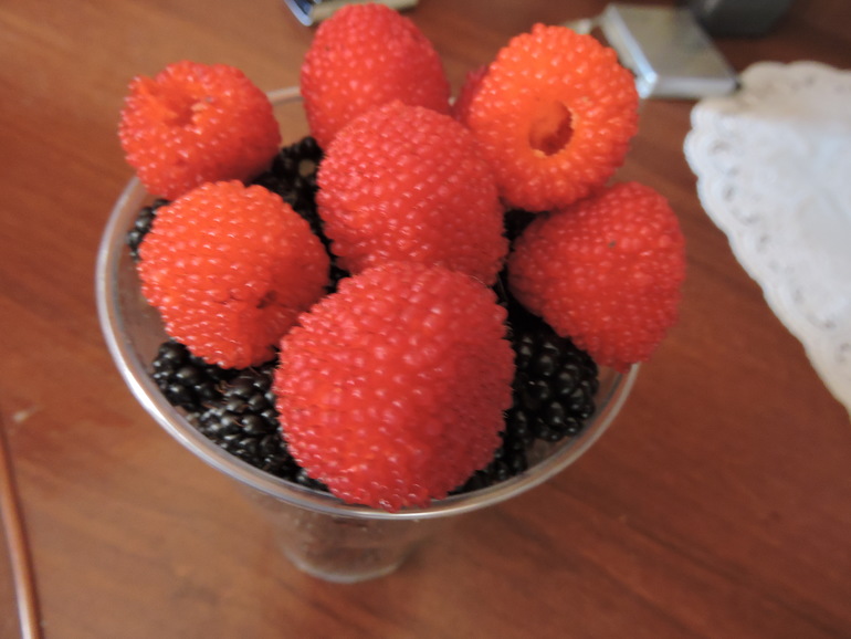Здравствуйте! Это тибетская малина-300. Земклуника-это гибрид земляники лесной с клубникой,ягода сладкая,очень ароматная,обильно плодоносит,если хорошо поливать до и во время созревания ягод. Размер-крупнее земляники лесной и много ягод над розеткой листьев.