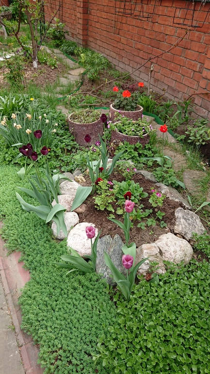 Клумба в тени. Я перестала любить тюльпаны у себя в саду.)))