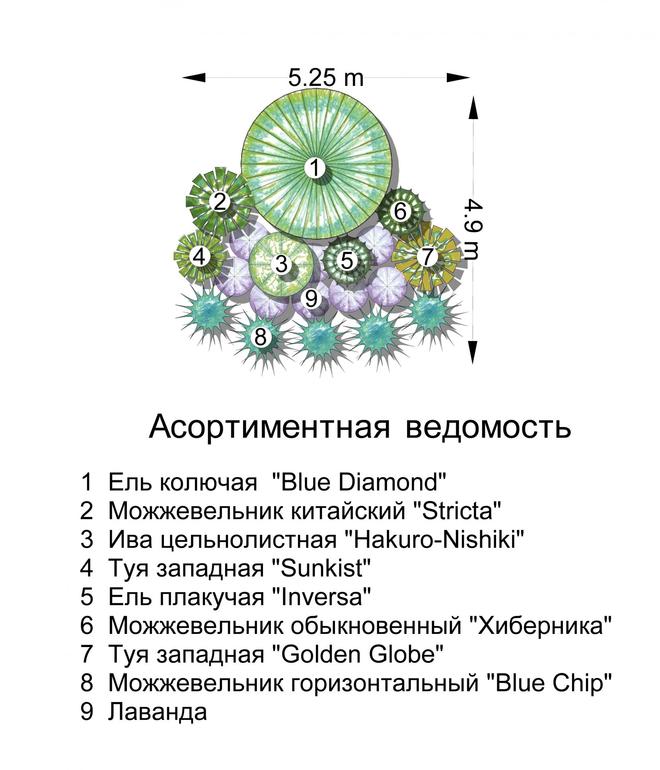 Полезные советы (обмен опытом)Выбрали вот такую красоту, но с хвойными дело не имела. Сейчас кусок целины и приедут саженцы в горшках. Что мне дать? Что еще купить? Как все это посадить? ? Ель голубую заменила на Супер Блю Сидлинг, 10-12 метров, пушистая... тую Санкист на Голден Энн они похожи вроде .... и не нашла плакучую ель вообще(( зато есть Коника, думаю о замене.