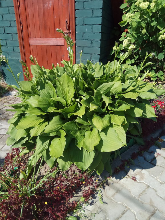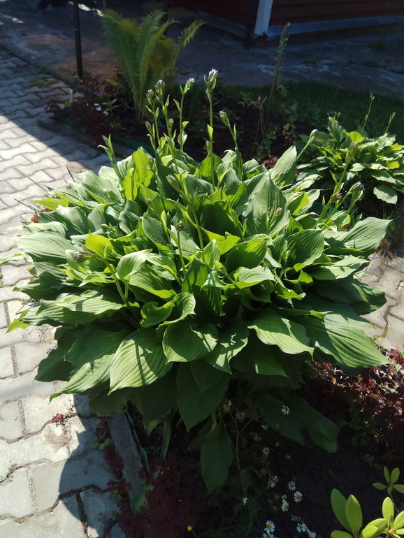 Многолетние цветыХосты у нас в этом году в ударе.Одна из них стала вылазить на дорожку.Приняли экстренные меры, и удивились результату! Такой роскошный букет получился! Пока не знаю навредит ли это растению, (советовать подвязывать не стану),но у нас не было выбора и теперь я восторге.Если она хорошо перенесет это лето даже пересаживать не буду, оставлю этот роскошный букет на месте.Жду когда зацветёт)))